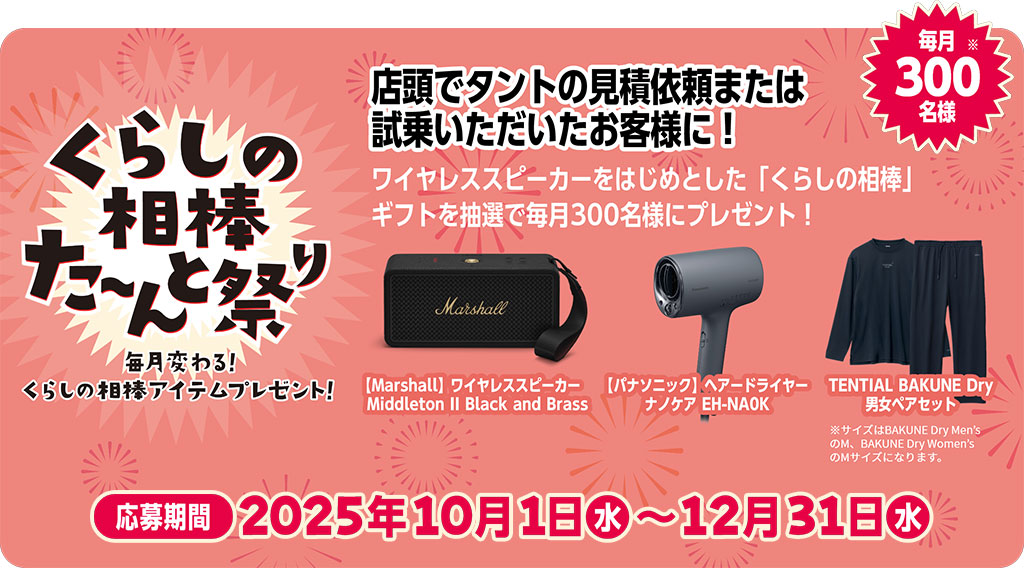 期間中、店頭で「タントの見積依頼」または「タントに試乗」いただいたお客様に