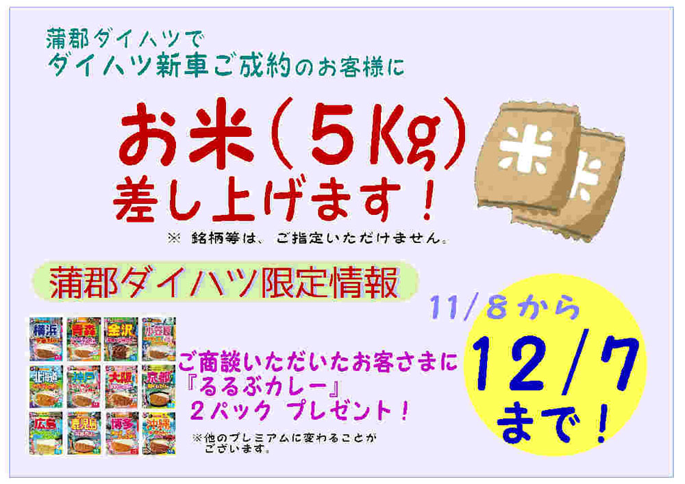 【11/8~12/7】蒲郡ダイハツ限定★ダイハツ新車ご成約・ご商談プレゼント!